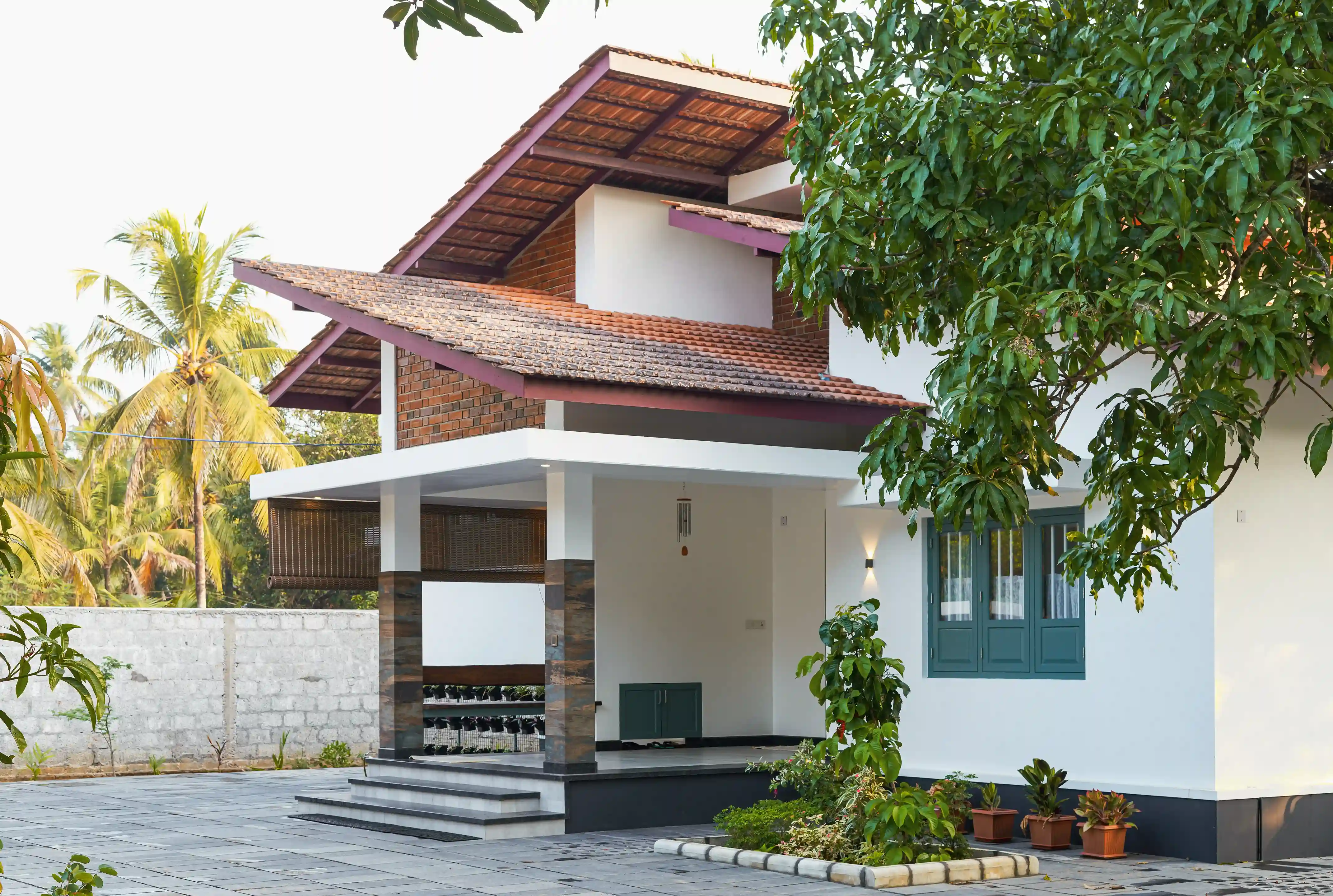 This residence is a refined expression of tropical living, where contemporary simplicity is enriched with familiar traditional elements. The architecture is defined by layered sloping roofs, exposed brick accents, and clean white volumes, creating a home that feels both modern and rooted in context.