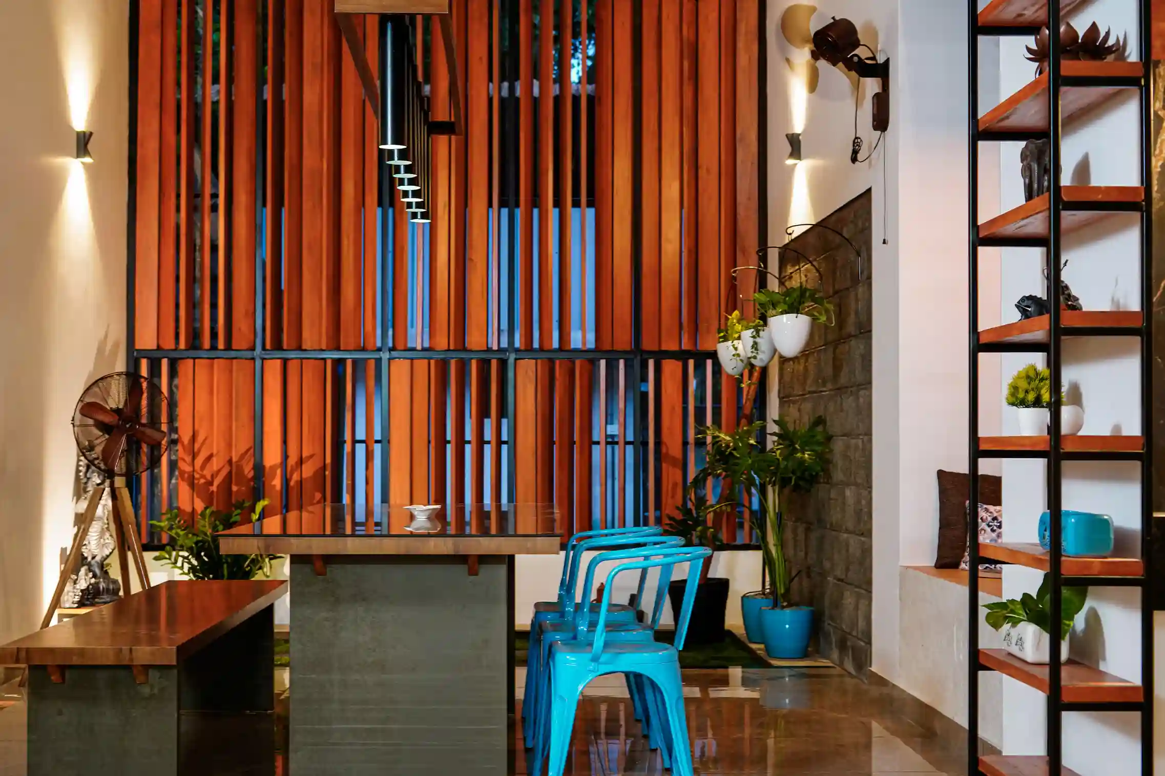 • Balanced use of exposed brick, plastered surfaces, and wood finishes
