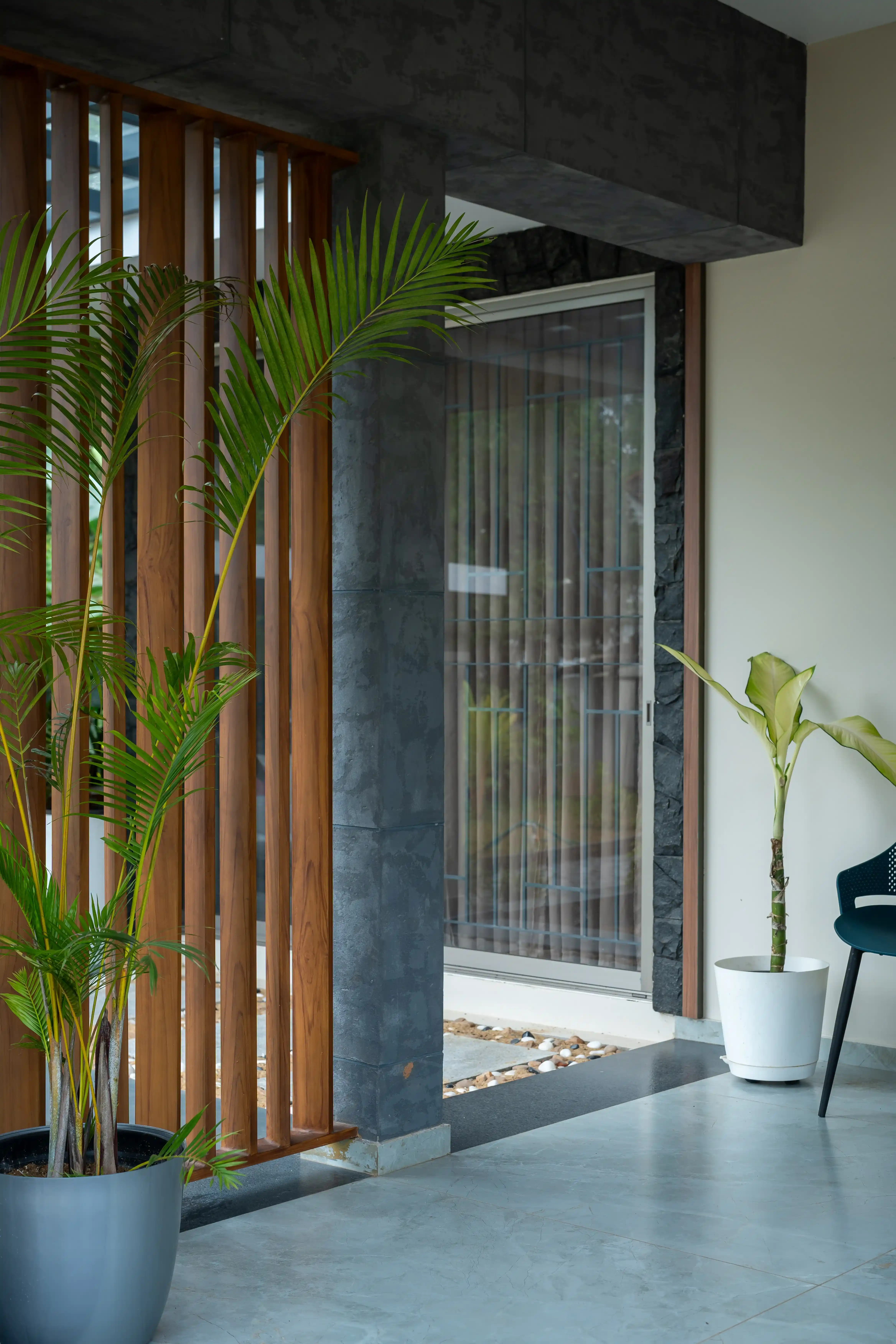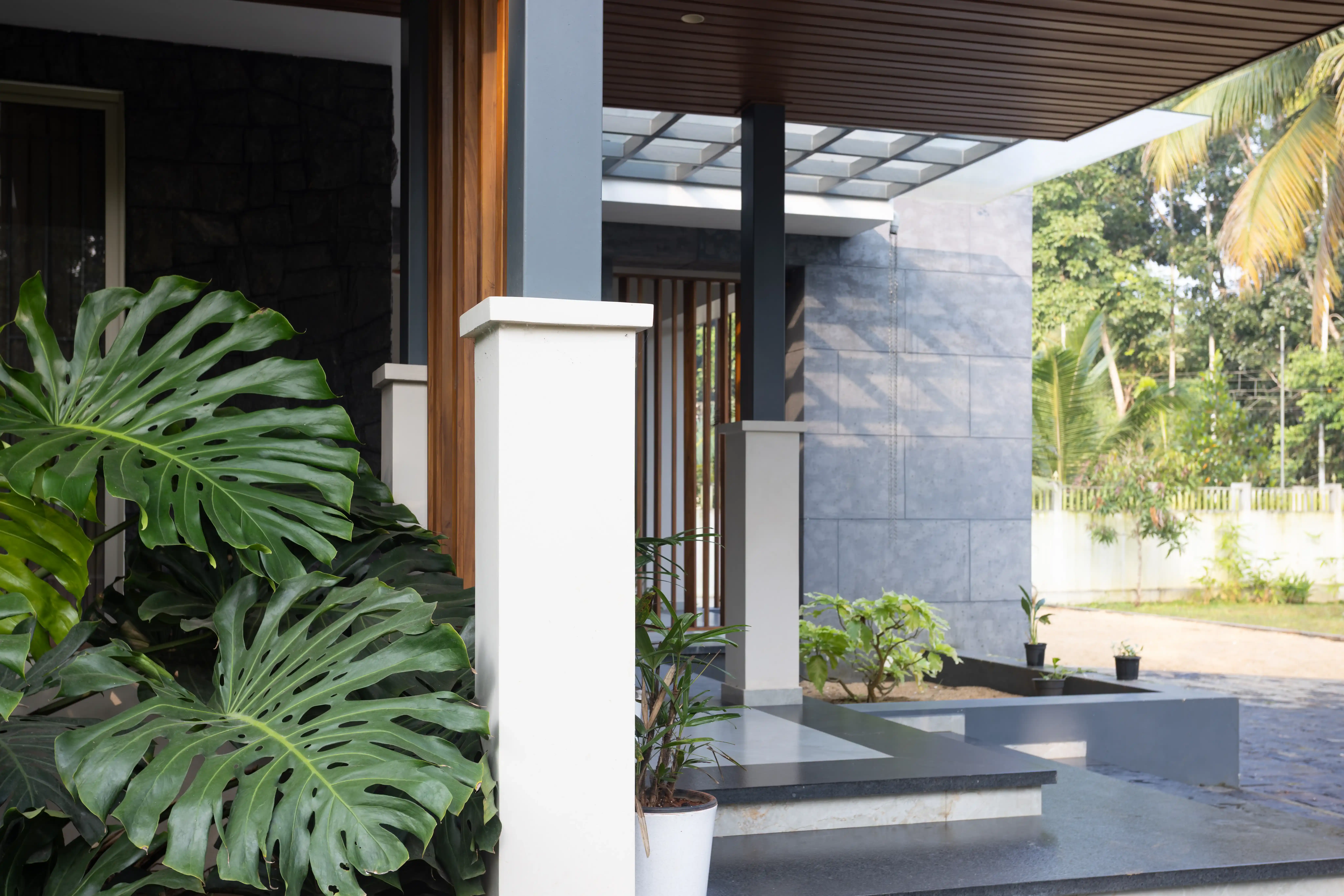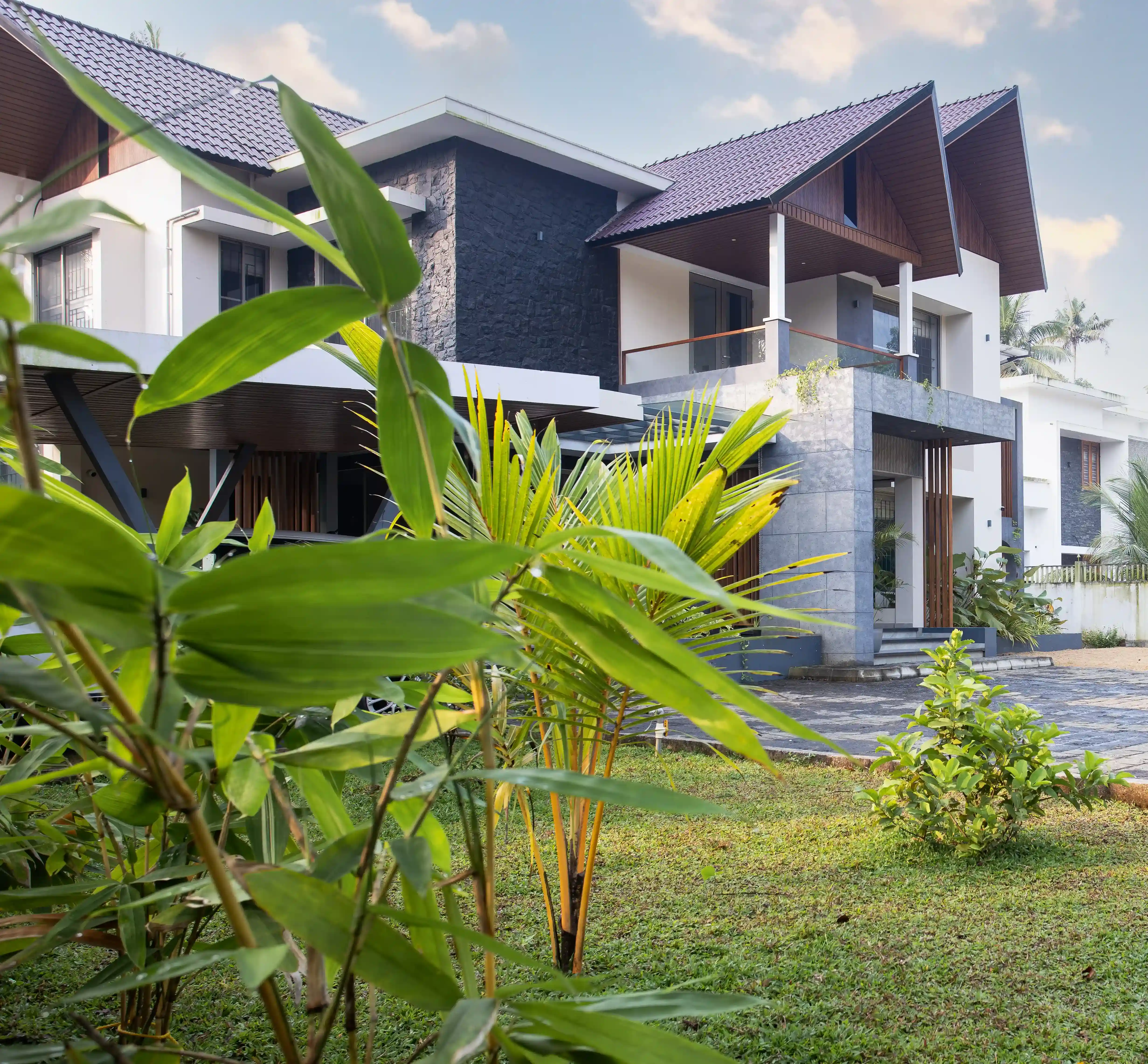 This residence is a refined example of contemporary living, where minimal design is enriched with warm materials and thoughtful detailing. The facade combines sharp gable forms, textured surfaces, and wooden cladding to create a bold yet balanced architectural identity.