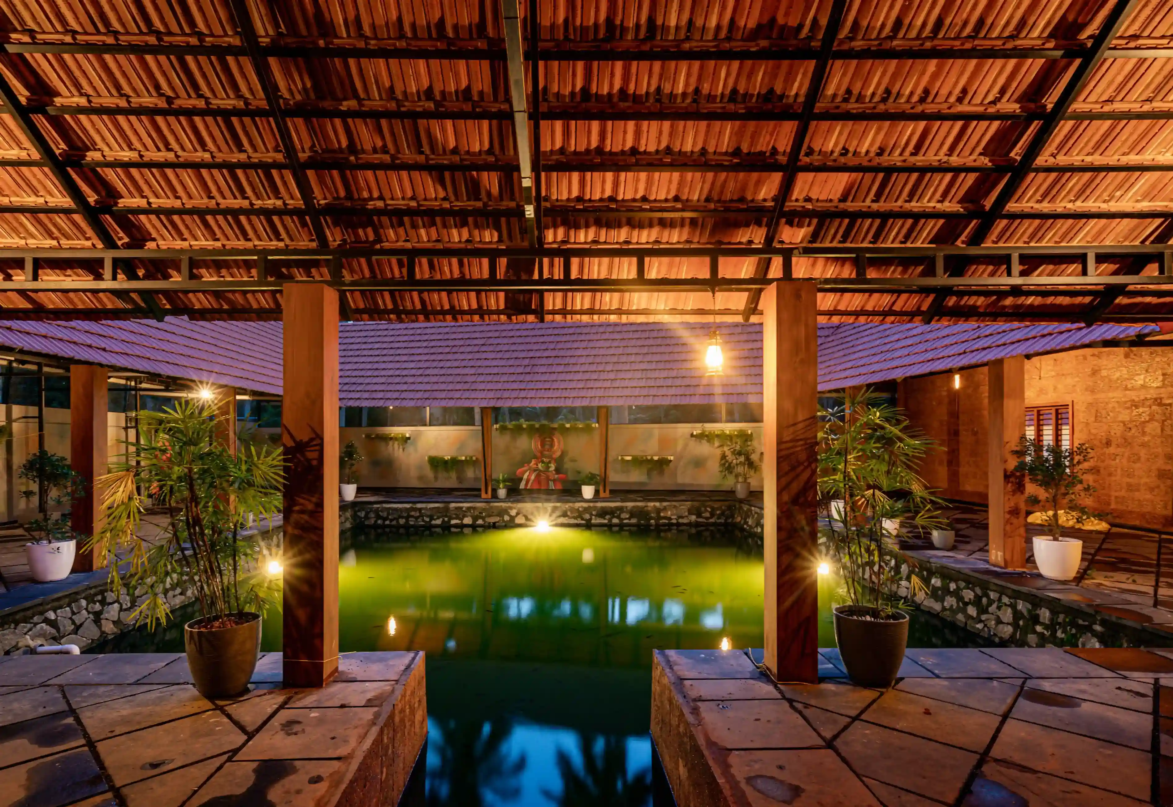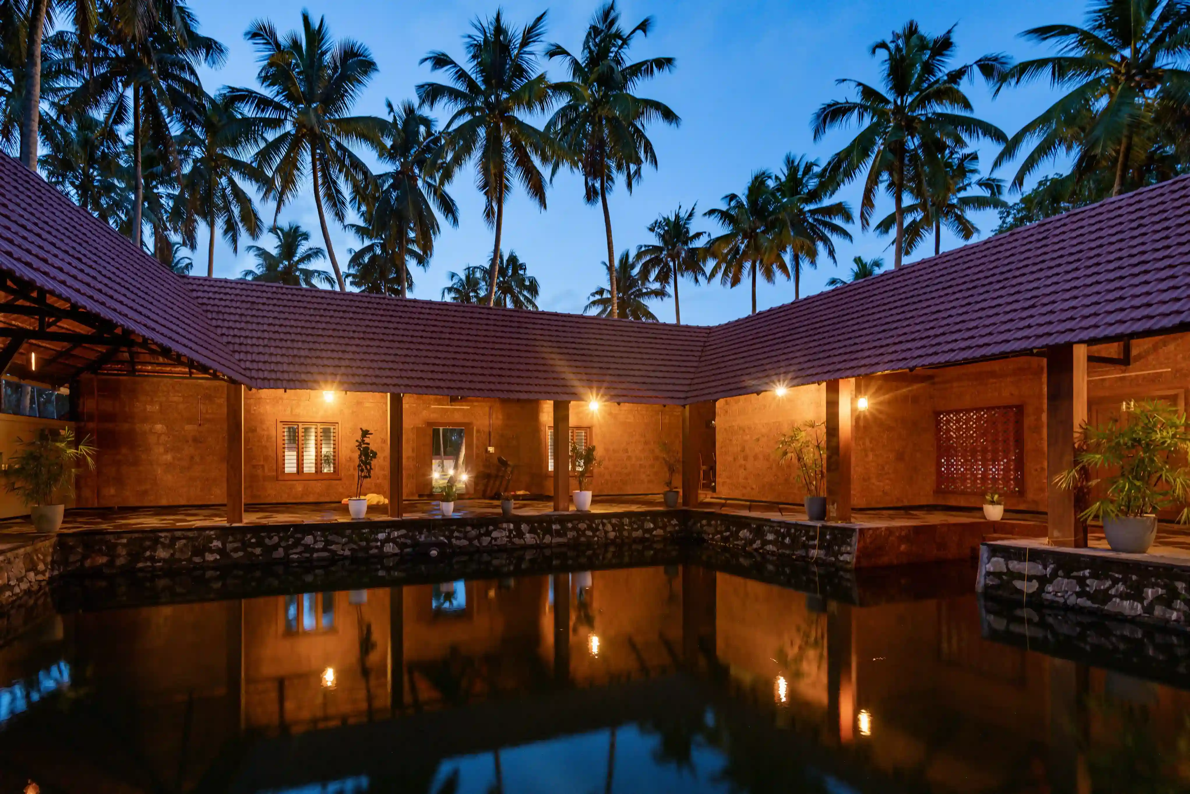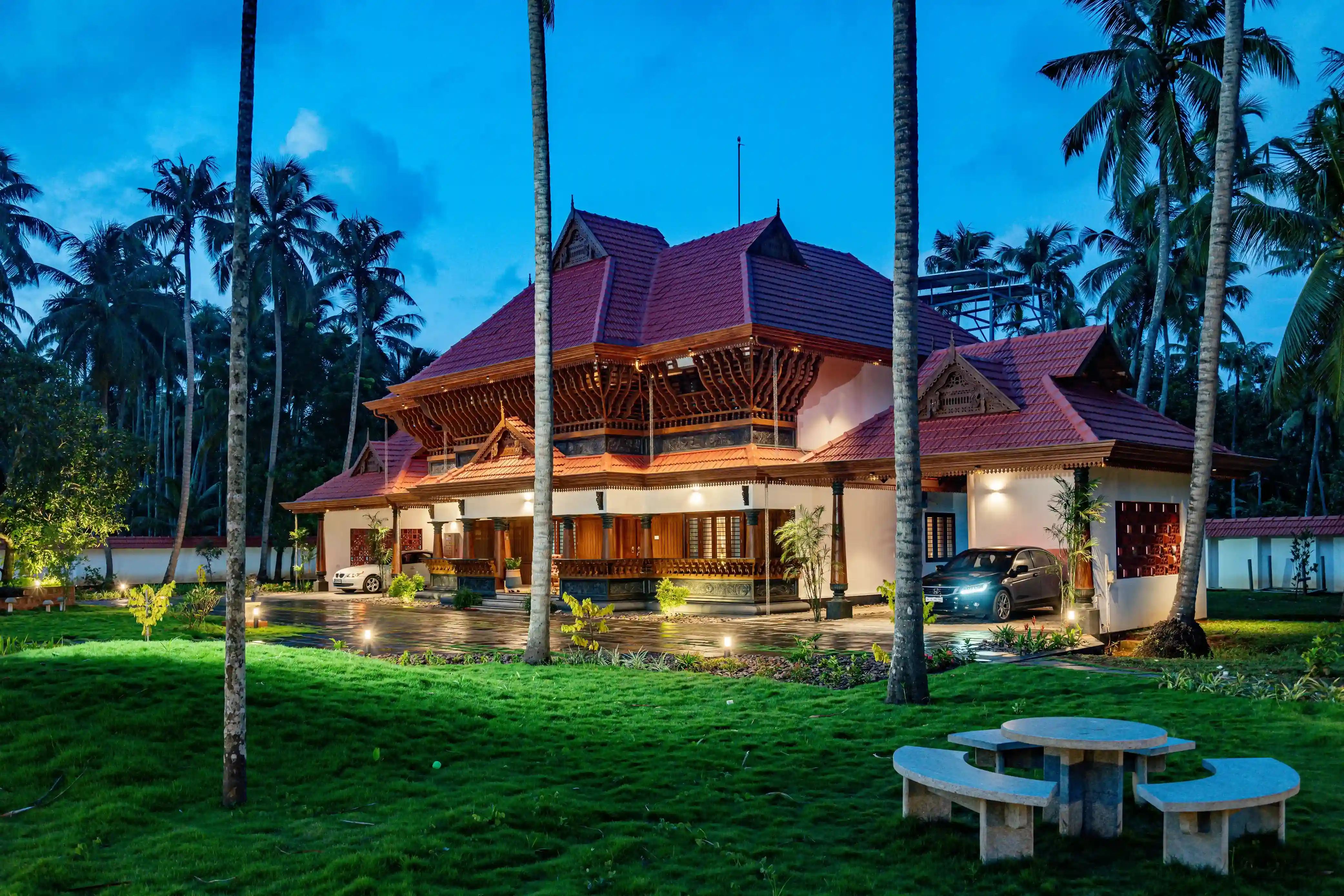 • Traditional Kerala-style architecture with sloping tiled roofs