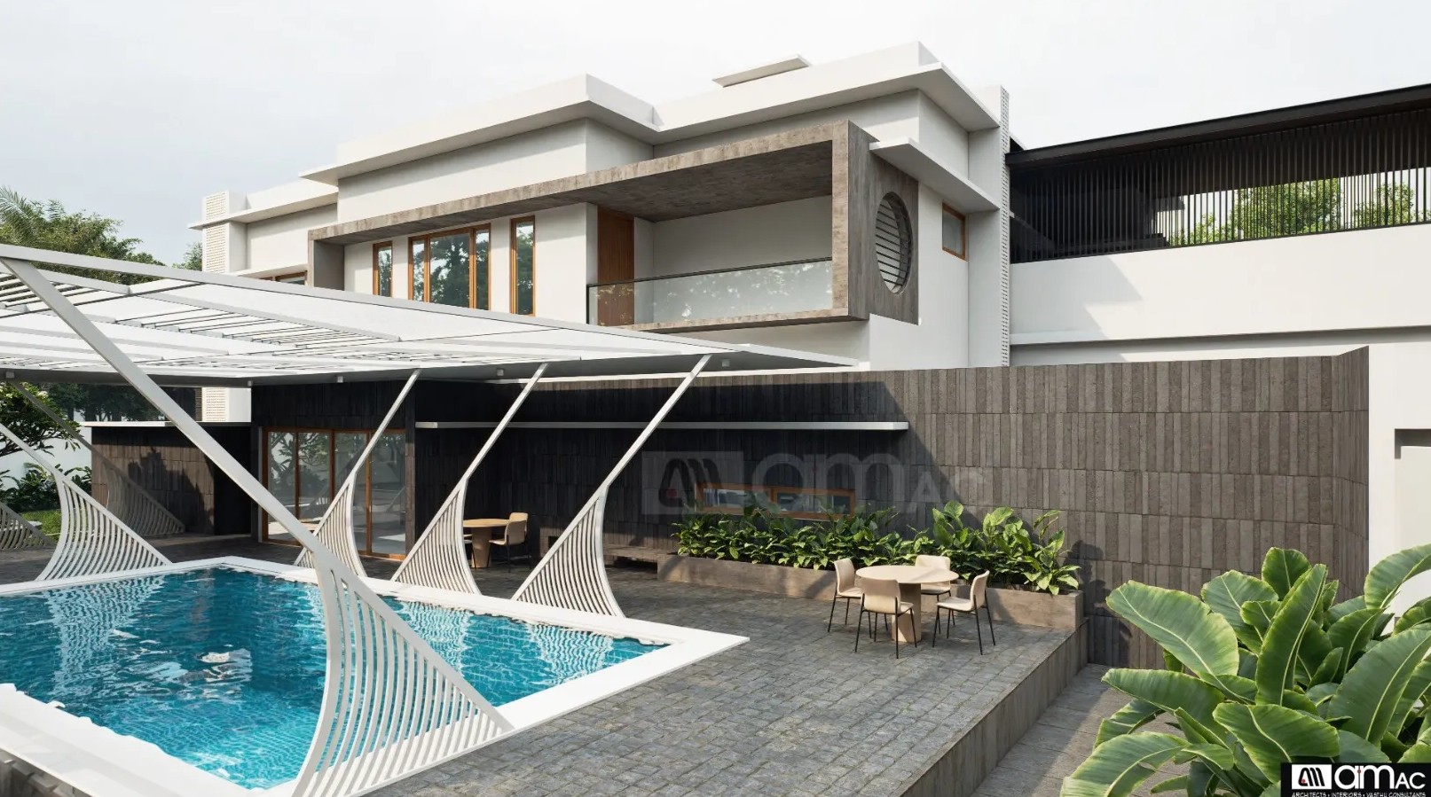 • Sculptural pergola/shading structure enhancing outdoor spaces