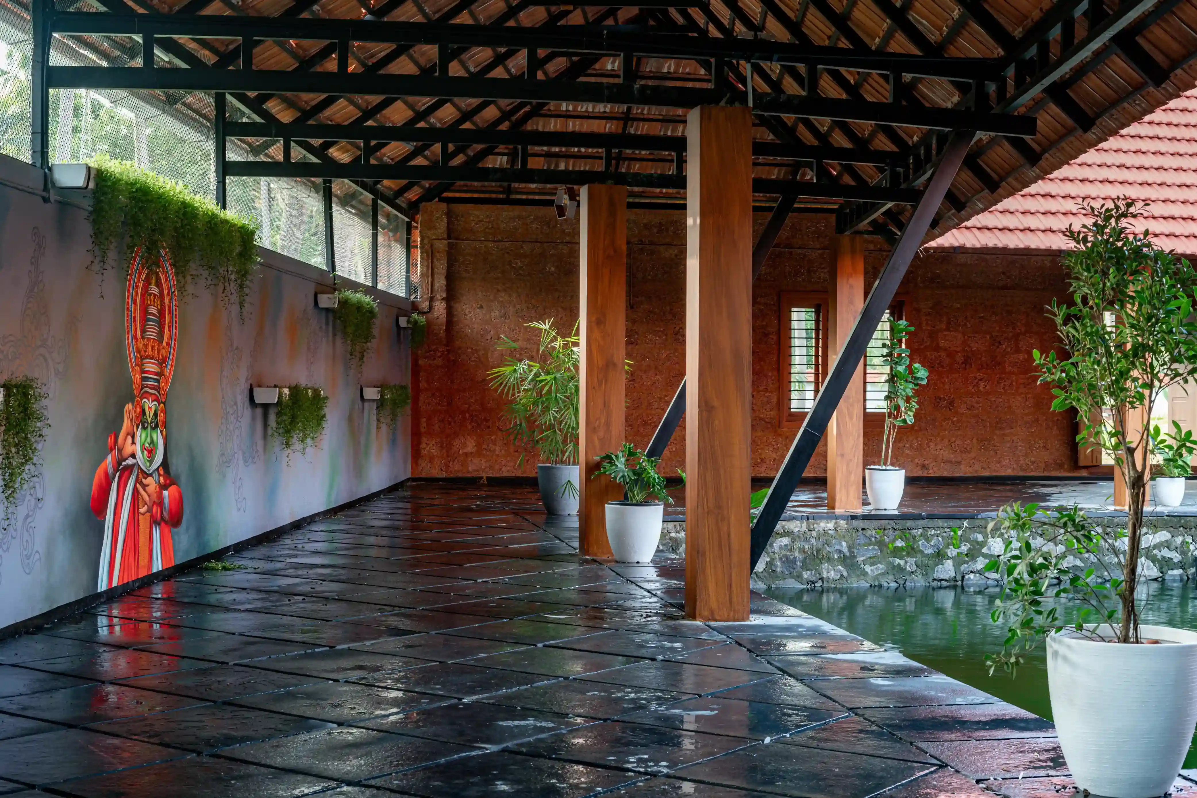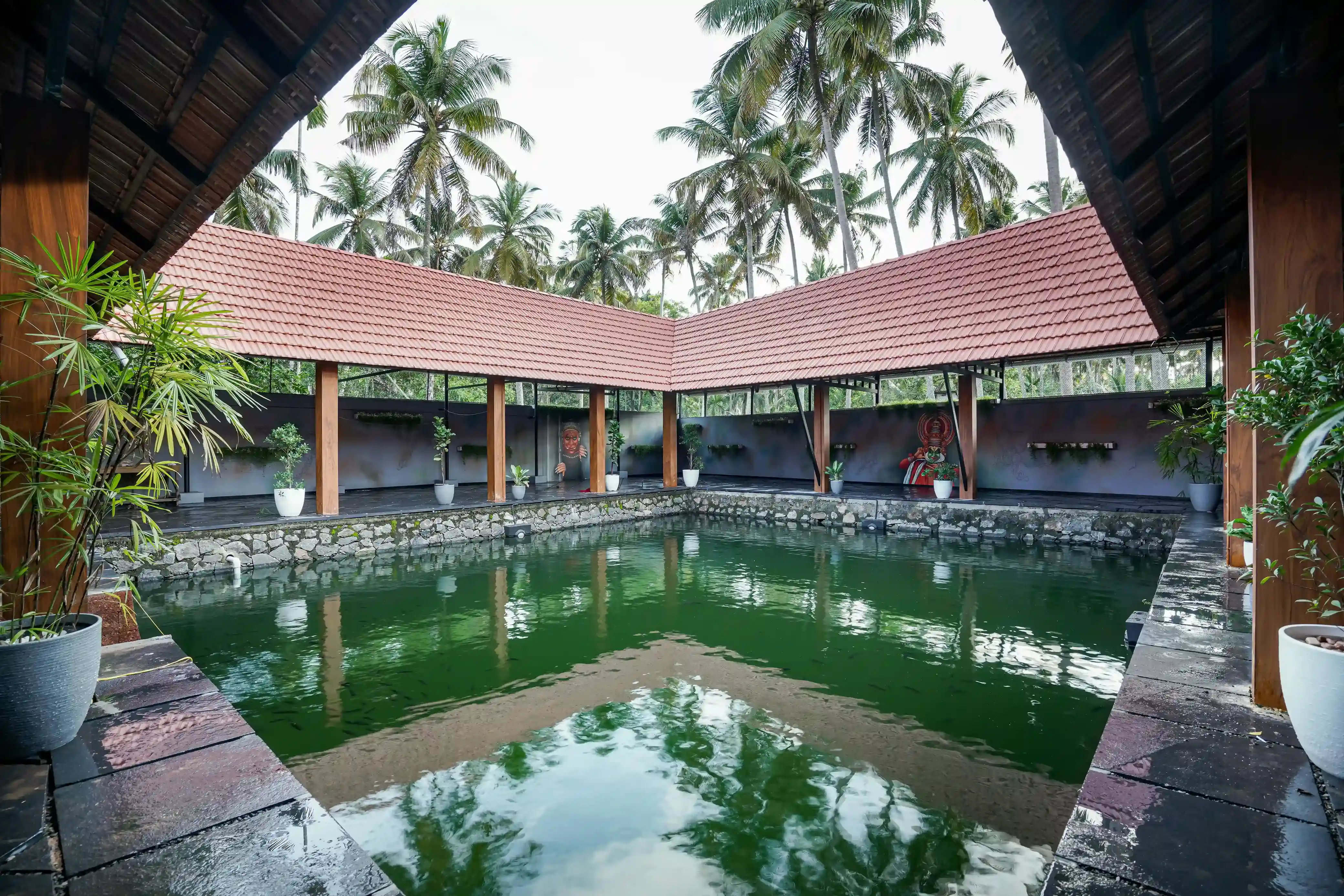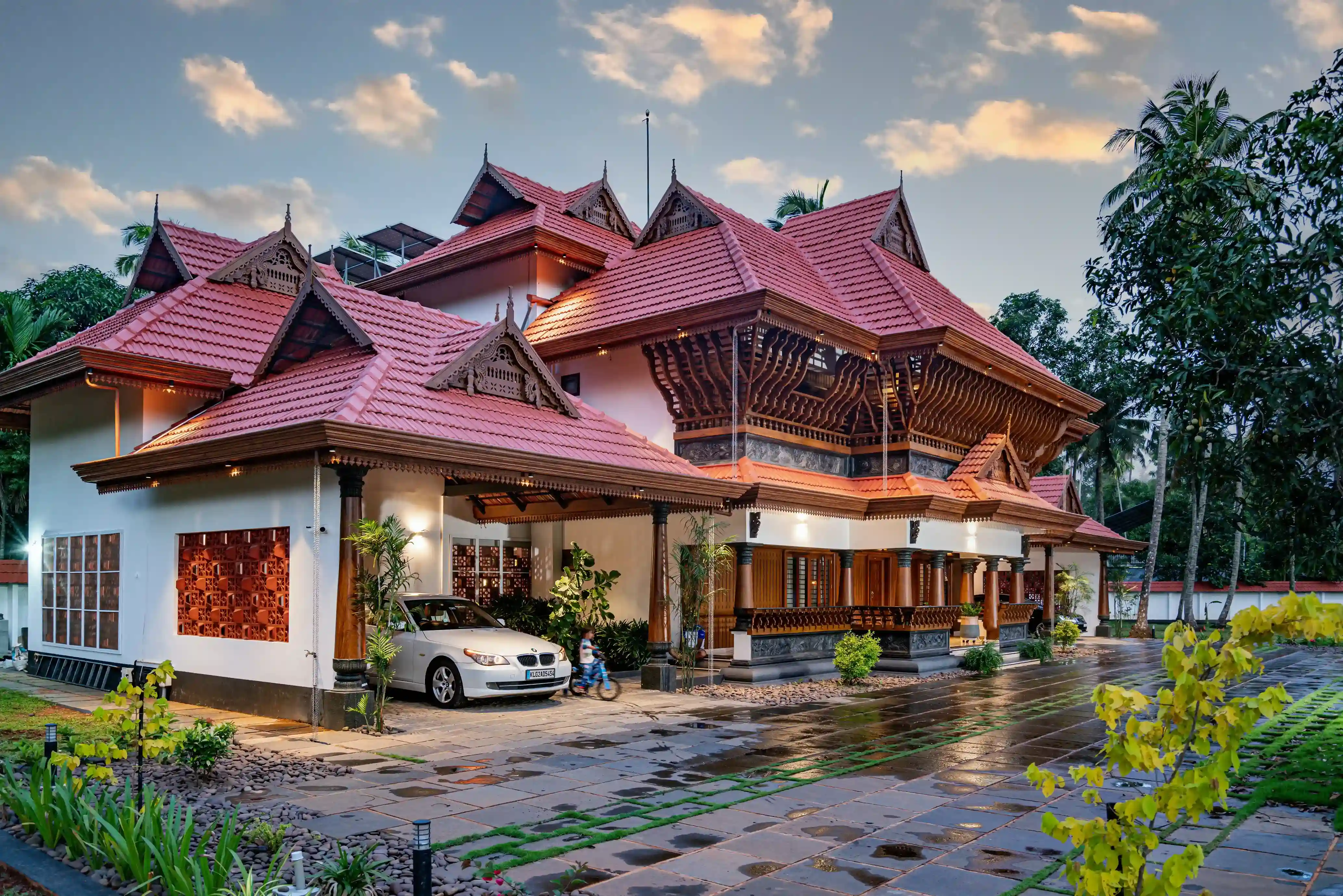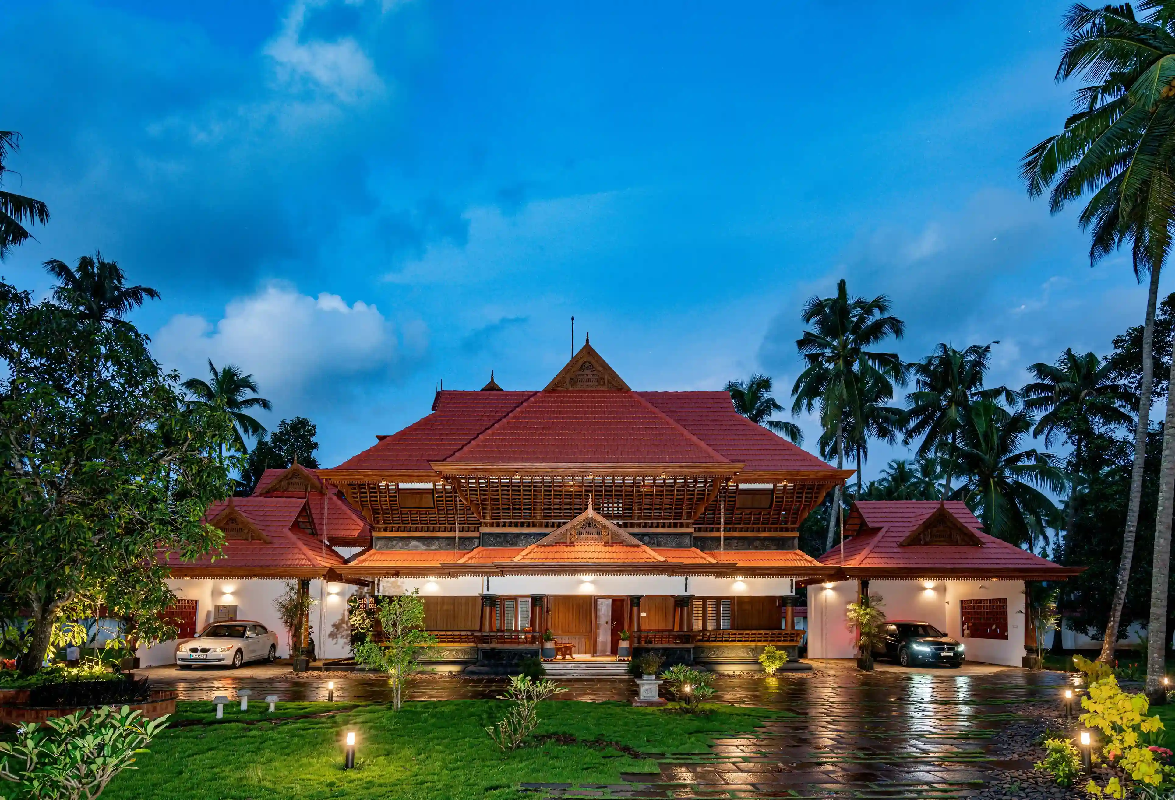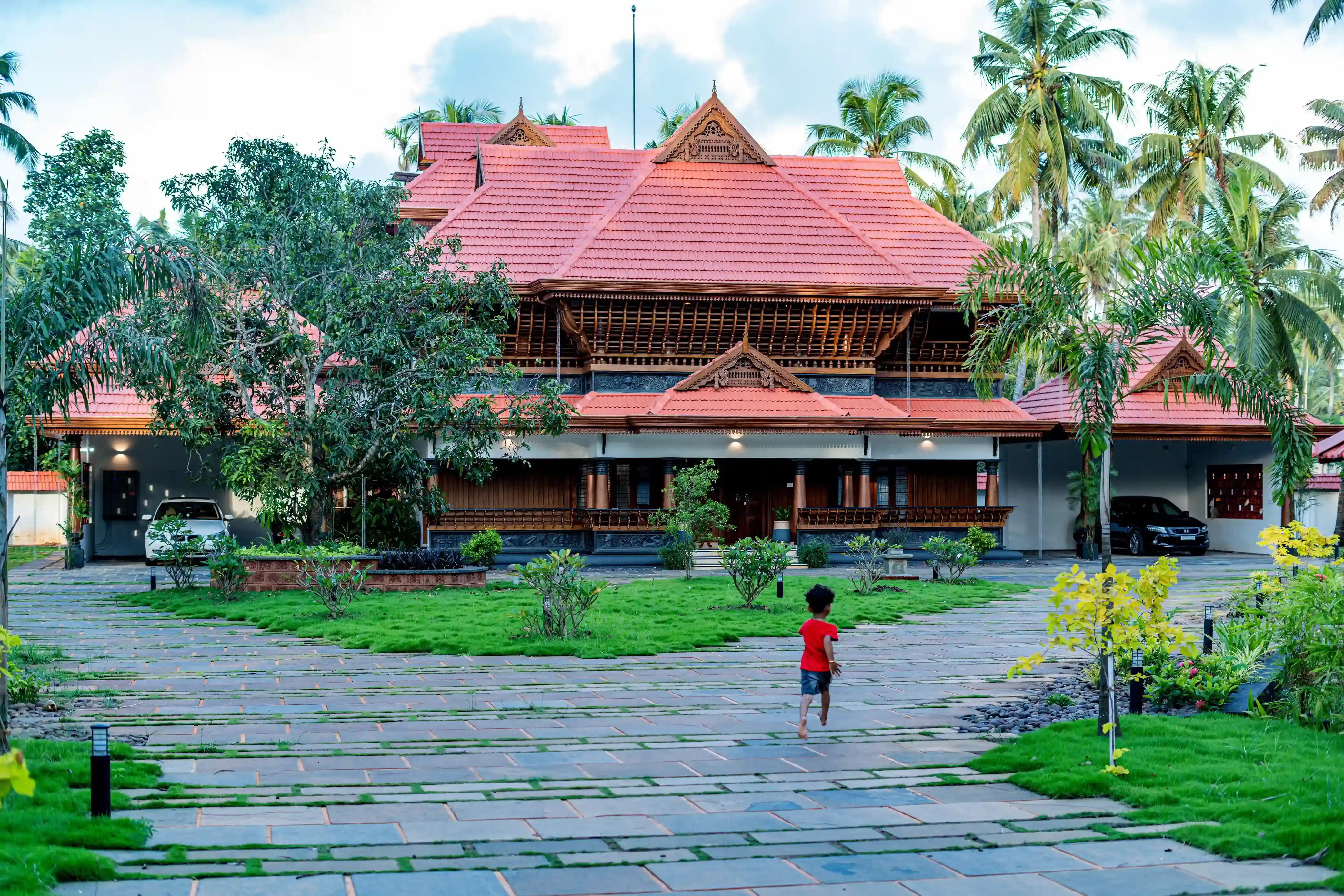 • Traditional Kerala-style architecture with sloping tiled roofs