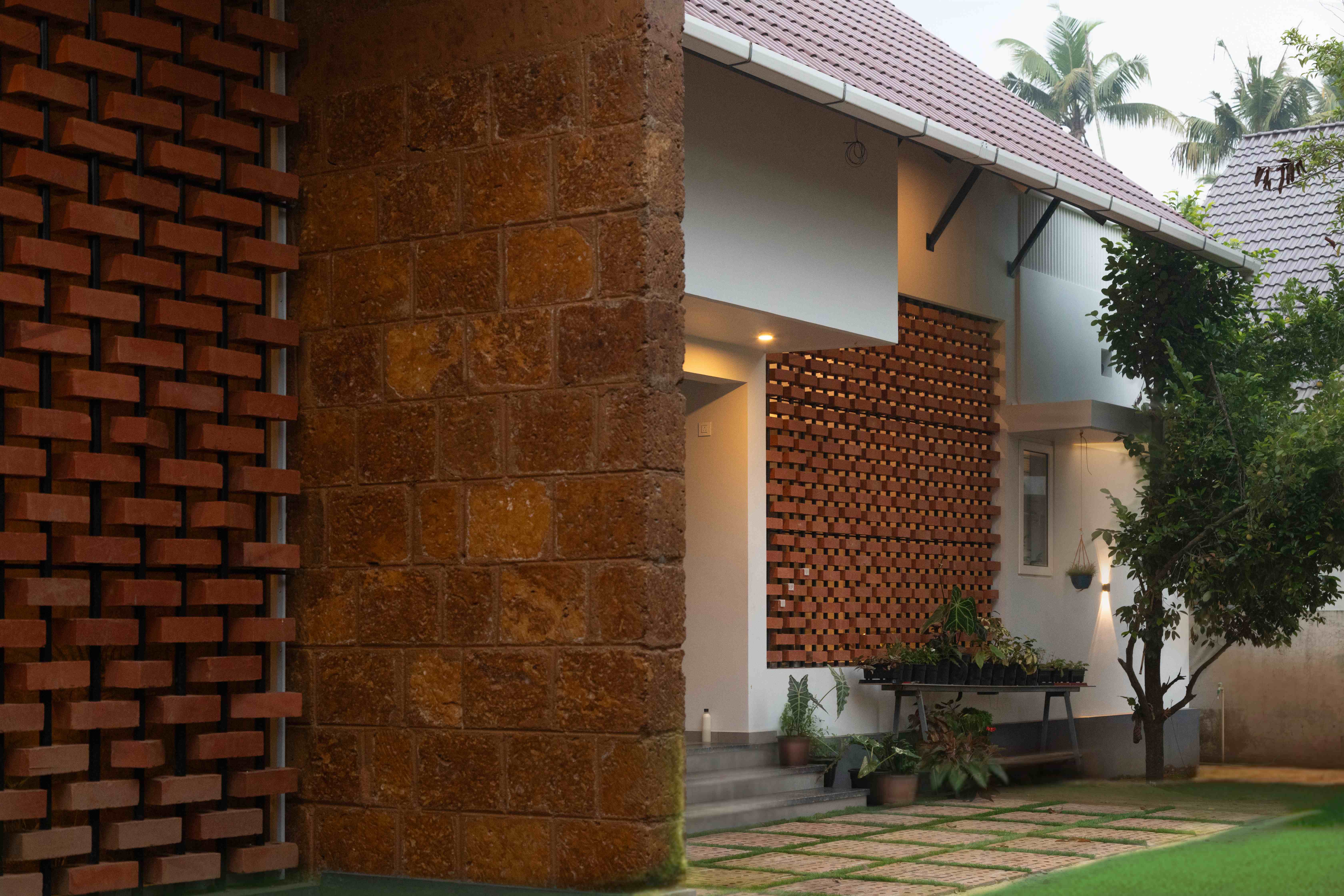 - Climate-Sensitive Design: The architecture incorporates features such as a sloping roof to manage heavy monsoon rains and uses local materials, like the prominent exposed laterite stone cladding and decorative clay jali brick screens.